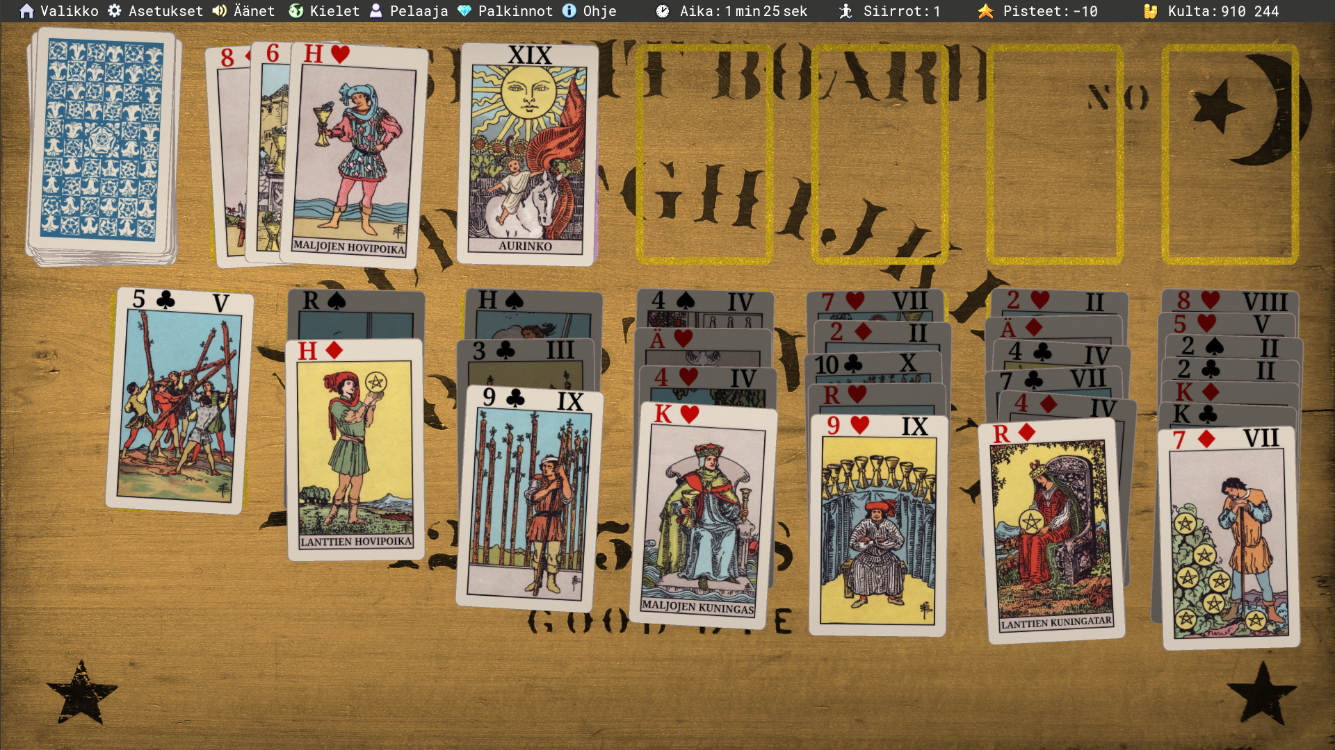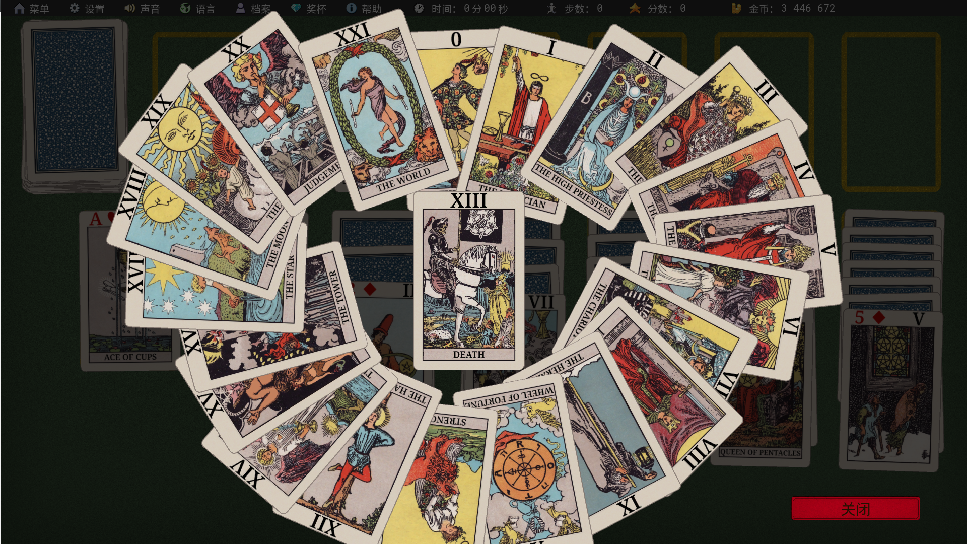通过经典塔罗牌体验克朗代克牌纸牌接龙。赚取金币,收集宝藏,解锁大阿尔克那牌;如果你赢了,还会得到一则属于你的命运解读。