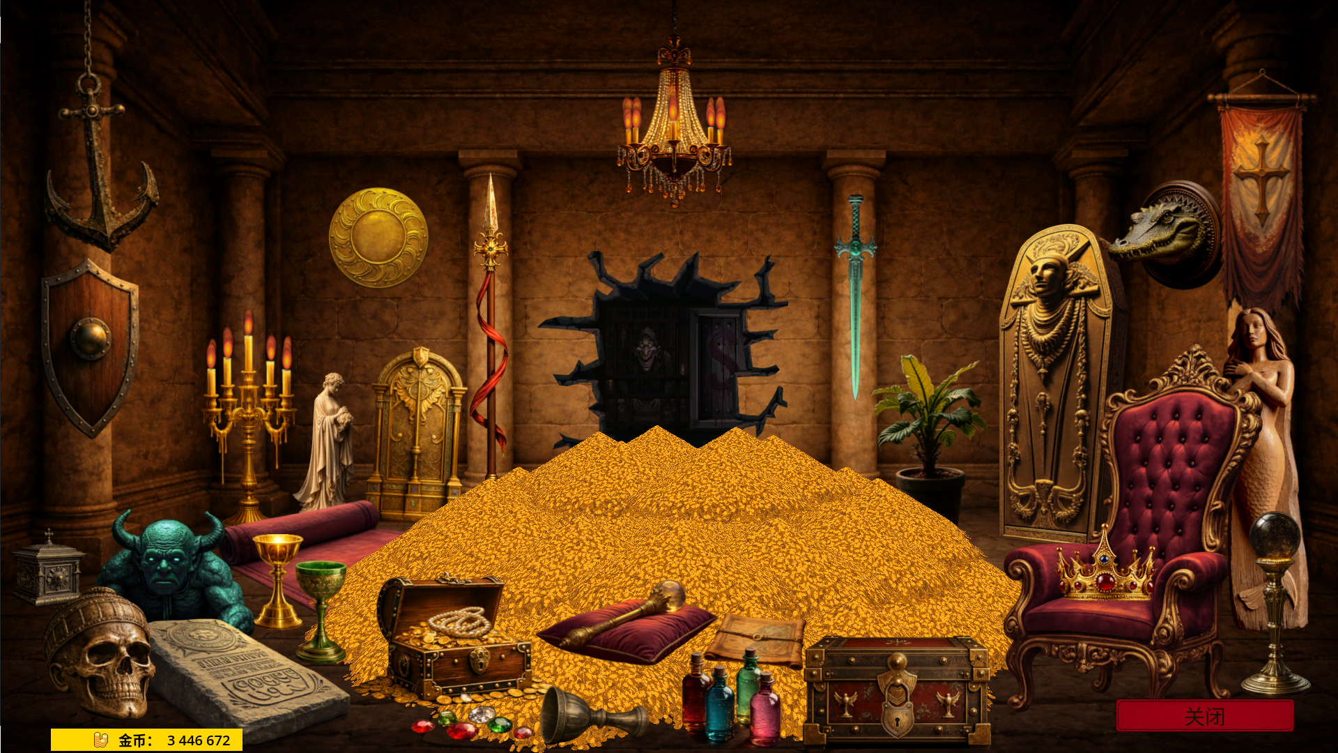 解锁后,可通过“奖杯”菜单 > “藏宝室”进入商店,也可以点击藏宝室后墙上的大洞进入。